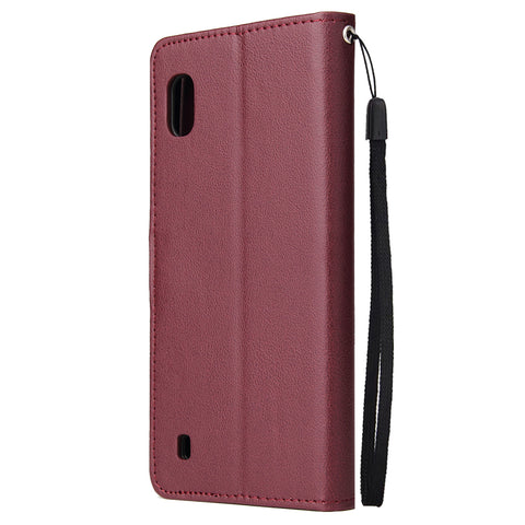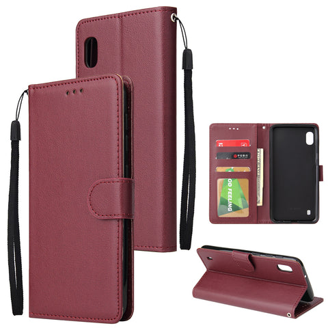 For Samsung A10 Flip-type Leather Protective Phone Case with 3 Card Position Buckle Design Phone Cover Red wine