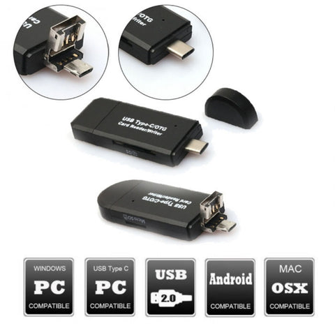 Mini Type-C multifunctional OTG Card Reader Micro USB for Computer Android Smartphone black