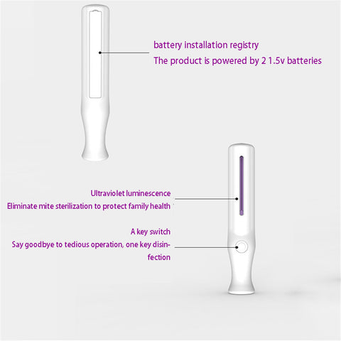 Handheld Uv Light Disinfection Mini Portable Sanitizer Lamp for Home Office Travel white