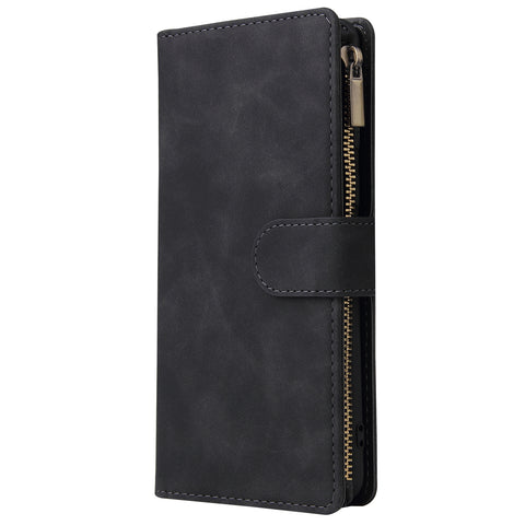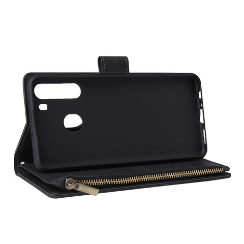 For Samsung A21 Mobile Phone Case Smartphone Shell Wallet Design Zipper Closure Overall Protection Cover 1 black