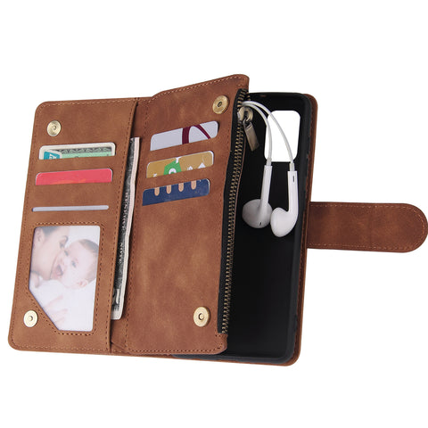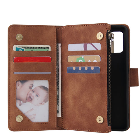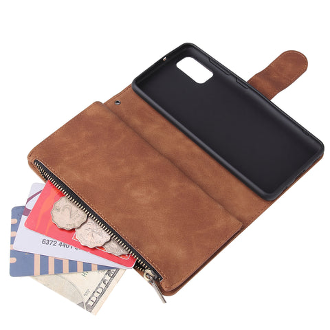 For Samsung A41 Mobile Phone Case Wallet Design Zipper Closure Overall Protection Cellphone Cover 4 brown