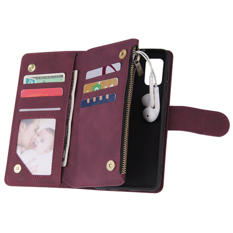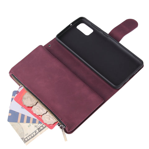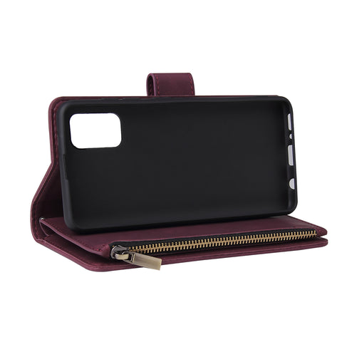 For Samsung A41 Mobile Phone Case Wallet Design Zipper Closure Overall Protection Cellphone Cover 5 wine red