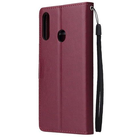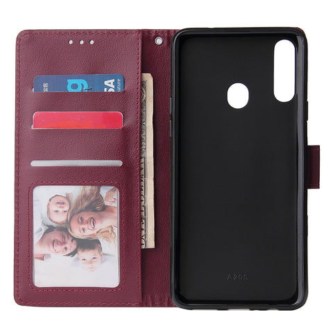 For Samsung A10S A20S Cellphone Cover Mobile Phone Shell Buckle Closure Cards Slots PU Leather Smart Shell with Wallet Overall Protection wine red