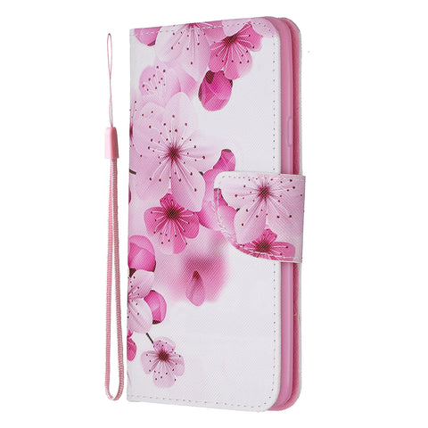 For Samsung A10S/A20S Smartphone Case PU Leather Phone Shell Lovely Cartoon Pattern Card Slots Overall Protection peach blossom