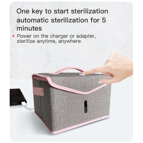 Instructions: connect the charger or adapter through USB cable, press the power key to start sterilization, and if the cover is opened during sterilization, the sterilization will stop automatically, lasting for 5 minutes, and then it will stop automatically