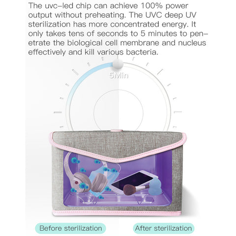 One key on sterilization, automatic sterilization for five minutes, UVC led green disinfection, no ozone, portable and easy to operate, sterilization rate of 99.9%.