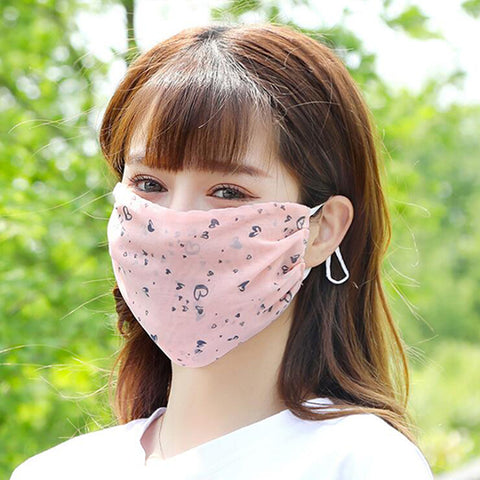 Fashionable Chiffon Printed Sunscreen Summer Breathable And Washable Dustproof Mask Snow Bud Love_One size