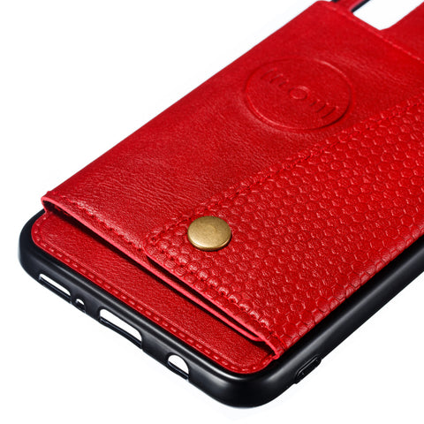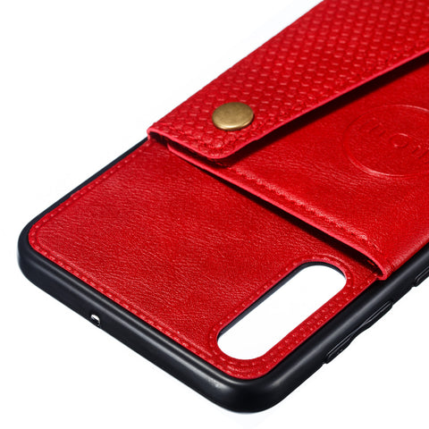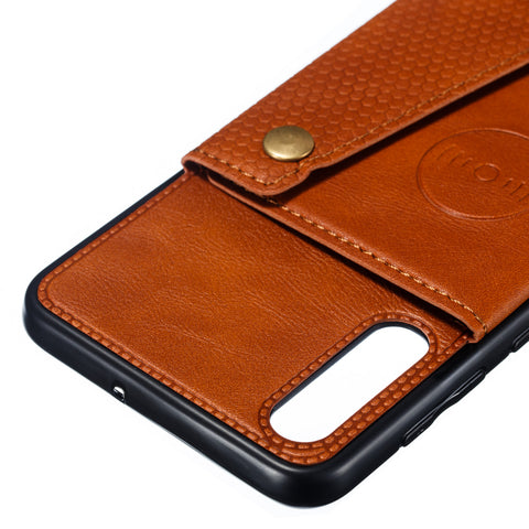 For Samsung A50 Double Buckle Non-slip Shockproof Cell Phone Case with Card Slot Bracket Light Brown
