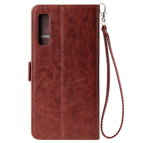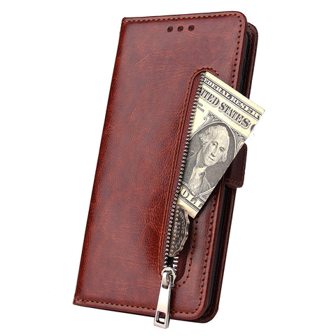 For Samsung A7 2018-A750 Solid Color PU Leather Zipper Wallet Double Buckle Protective Case with Stand & Lanyard brown