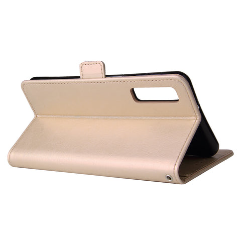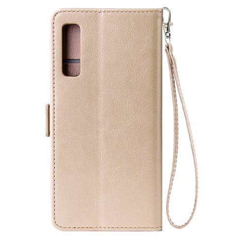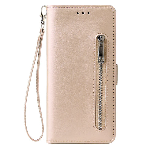 For Samsung A7 2018-A750 Solid Color PU Leather Zipper Wallet Double Buckle Protective Case with Stand & Lanyard gold