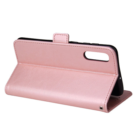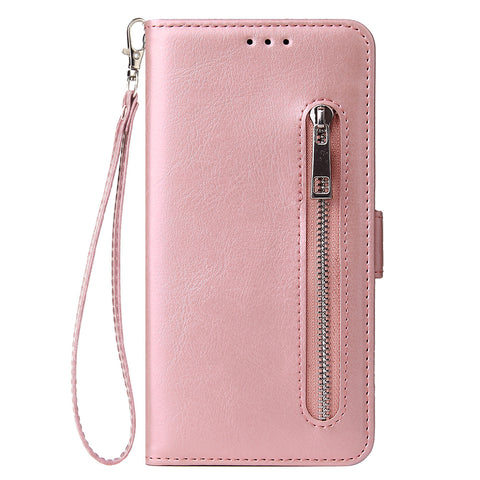 For Samsung A50 Solid Color PU Leather Zipper Wallet Double Buckle Protective Case with Stand & Lanyard Rose gold