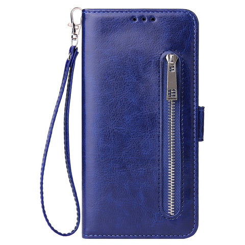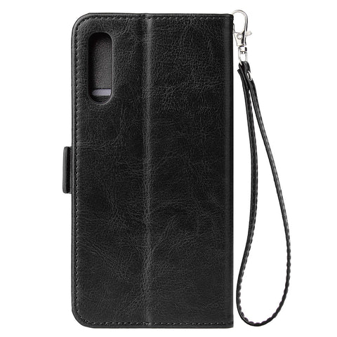 For Samsung A50 Solid Color PU Leather Zipper Wallet Double Buckle Protective Case with Stand & Lanyard black