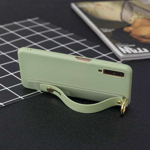 For Samsung A7 2018 Simple Solid Color Chic Wrist Rope Bracket Matte TPU Anti-scratch Non-slip Protective Cover Back Case 10 beans green
