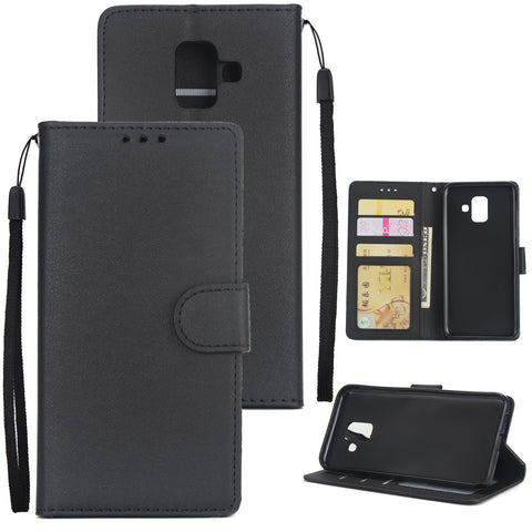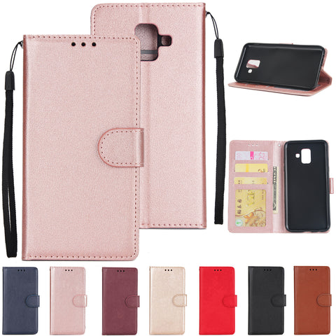 For Samsung A6 2018 Flip-type Leather Protective Phone Case with 3 Card Position Buckle Design Phone Cover blue