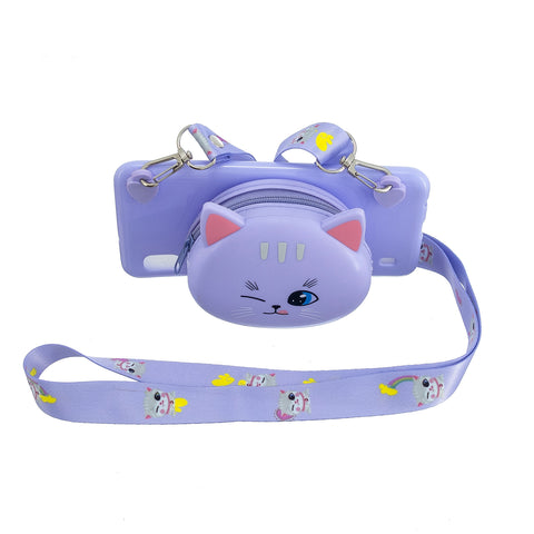 For Samsung A10/A20/A30 Case Mobile Phone Shell Shockproof TPU Cellphone Cover with Cartoon Cat Pig Panda Coin Purse Lovely Shoulder Starp Purple