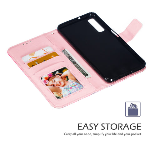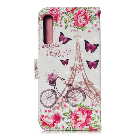For Samsung A7 2018 3D Coloured Painted Leather Protective Phone Case with Button & Card Position & Lanyard Bicycle tower