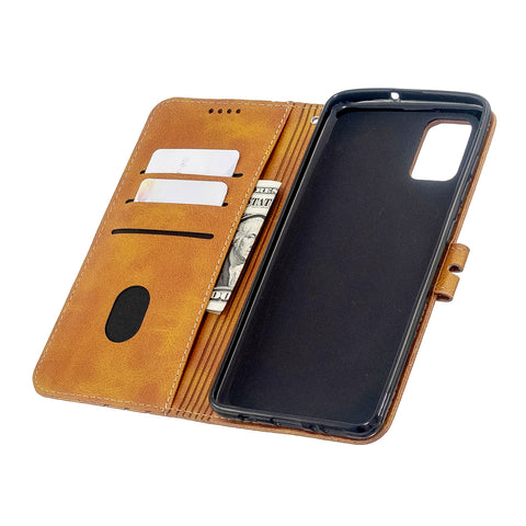 For Samsung A51/A71/M30S Case Soft Leather Cover with Denim Texture Precise Cutouts Wallet Design Buckle Closure Smartphone Shell  yellow