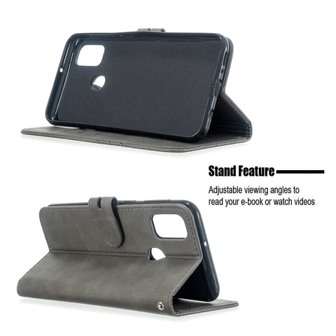 For Samsung A51/A71/M30S Case Soft Leather Cover with Denim Texture Precise Cutouts Wallet Design Buckle Closure Smartphone Shell gray