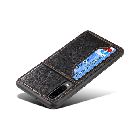 For Samsung A50 Retro PU Leather Wallet Card Holder Stand Non-slip Shockproof Cell Phone Case black