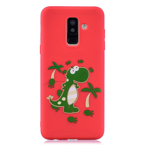 For Samsung A6 plus 2018 Cute Coloured Painted TPU Anti-scratch Non-slip Protective Cover Back Case with Lanyard red