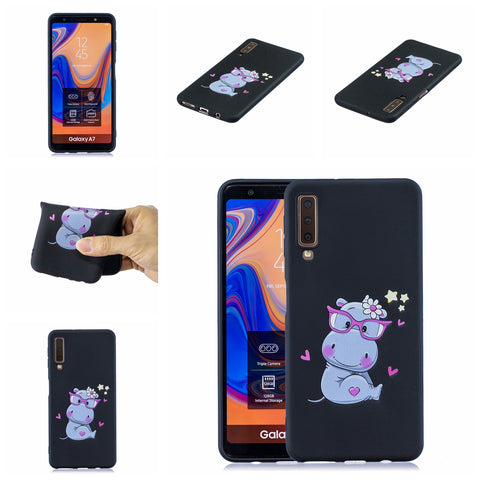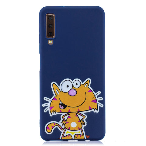 For Samsung A7 2018 Cartoon Lovely Coloured Painted Soft TPU Back Cover Non-slip Shockproof Full Protective Case with Lanyard sapphire