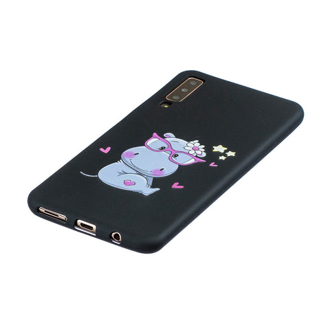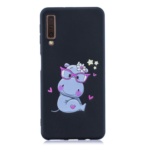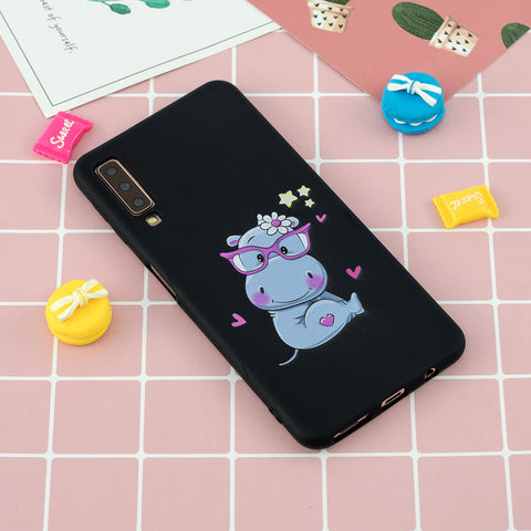 For Samsung A7 2018 Cartoon Lovely Coloured Painted Soft TPU Back Cover Non-slip Shockproof Full Protective Case with Lanyard black