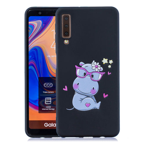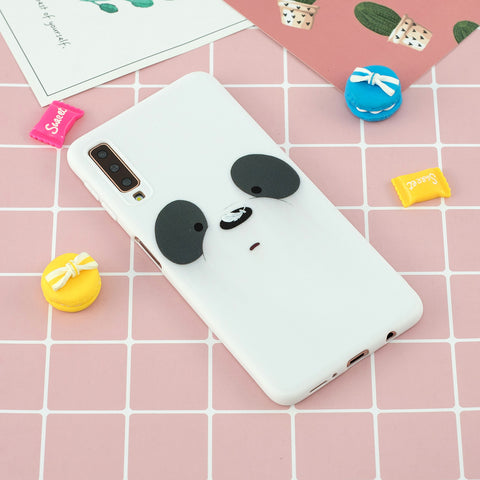 For Samsung A7 2018 Cartoon Lovely Coloured Painted Soft TPU Back Cover Non-slip Shockproof Full Protective Case with Lanyard white