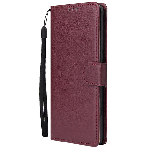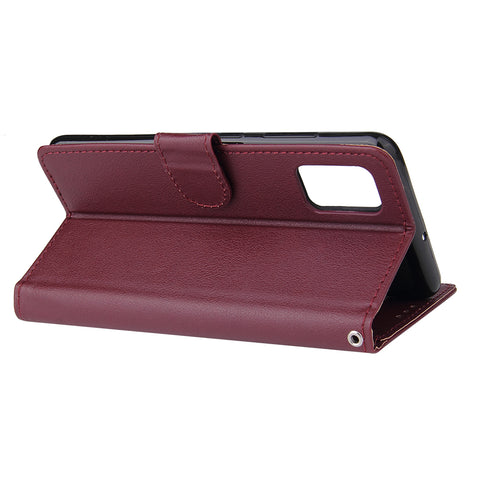 For Samsung A51 Phone Case PU Leather Shell All-round Protection Precise Cutout Wallet Design Cellphone Cover Wine red