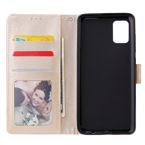 For Samsung A71 Phone Case PU Leather Shell All-round Protection Precise Cutout Wallet Design Cellphone Cover  Gold