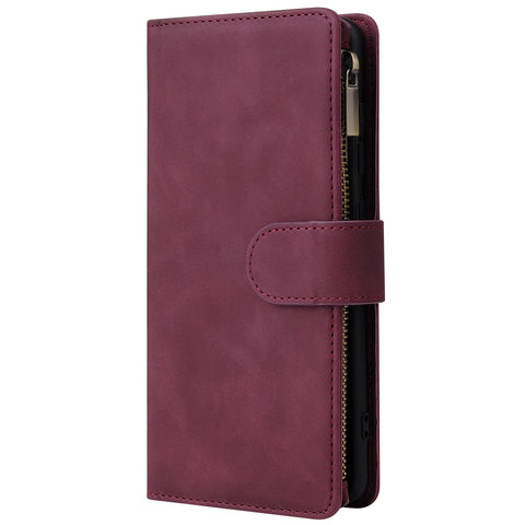 For Samsung A51 Case Smartphone Shell Precise Cutouts Zipper Closure Wallet Design Overall Protection Phone Cover Wine red
