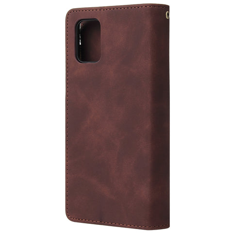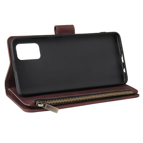 For Samsung A51 Case Smartphone Shell Precise Cutouts Zipper Closure Wallet Design Overall Protection Phone Cover Coffee