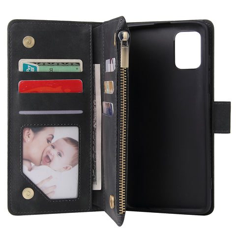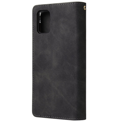 For Samsung A51 Case Smartphone Shell Precise Cutouts Zipper Closure Wallet Design Overall Protection Phone Cover Black