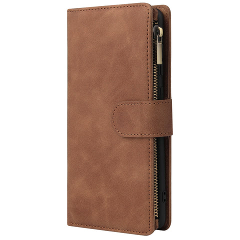 For Samsung A71 Case Smartphone Shell Precise Cutouts Zipper Closure Wallet Design Overall Protection Phone Cover Brown