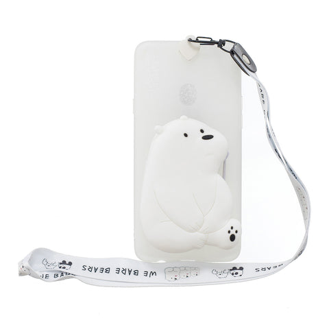 For Samsung A10S A20S TPU Full Protective Cartoon Mobile Phone Cover with Coin Purse+Hanging Lanyard 6 white big bear