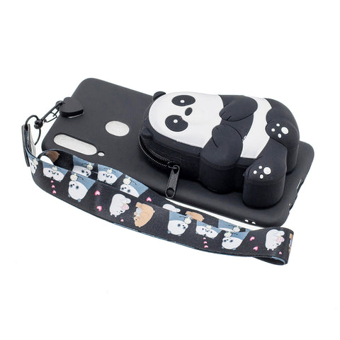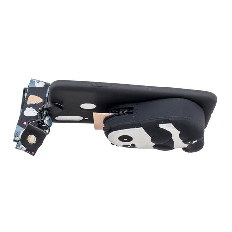 For Samsung A10S A20S TPU Full Protective Cartoon Mobile Phone Cover with Coin Purse+Hanging Lanyard 5 black striped bears