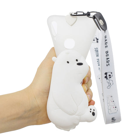For Samsung A10S A20S TPU Full Protective Cartoon Mobile Phone Cover with Coin Purse+Hanging Lanyard 6 white big bear
