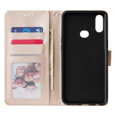 For Samsung A10S A20S Cellphone Cover Mobile Phone Shell Buckle Closure Cards Slots PU Leather Smart Shell with Wallet Overall Protection gold