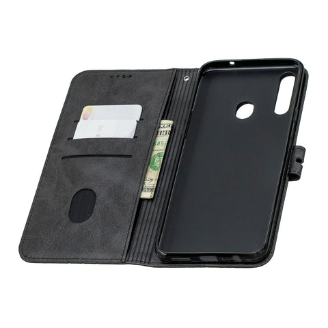 For Samsung A10S A20S Solid Color Denim Texture Front Clasp Bracket Leather Mobile Phone Cover black