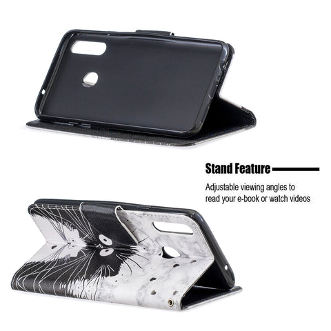 For Samsung A10S/A20S Smartphone Case PU Leather Phone Shell Lovely Cartoon Pattern Card Slots Overall Protection Red lip cat