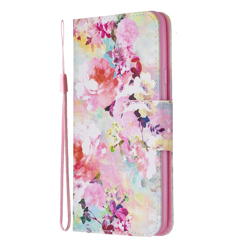 For Samsung A10S/A20S Smartphone Case PU Leather Phone Shell Lovely Cartoon Pattern Card Slots Overall Protection Watercolor flower
