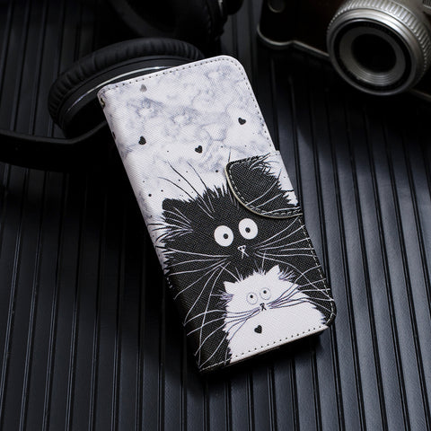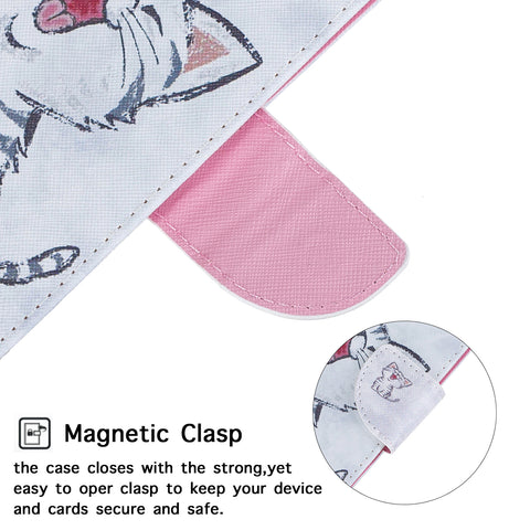 For Samsung A10S/A20S Smartphone Case PU Leather Phone Shell Lovely Cartoon Pattern Card Slots Overall Protection Red lip cat