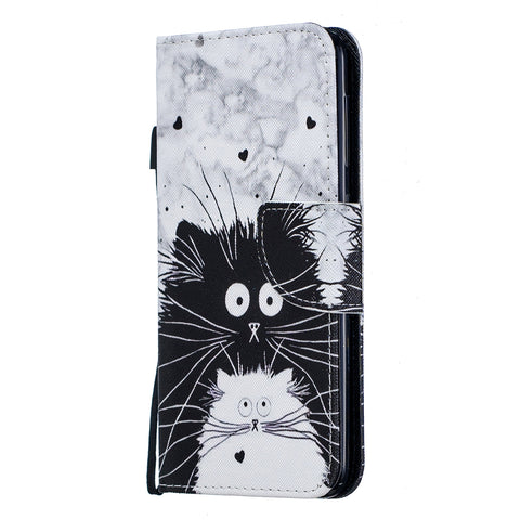 For Samsung A10/A20/A30 Smartphone Case PU Leather Wallet Design Cellphone Cover with Card Holder Stand Available Black white cat