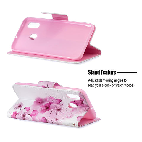 For Samsung A10/A20/A30 Smartphone Case PU Leather Wallet Design Cellphone Cover with Card Holder Stand Available peach blossom