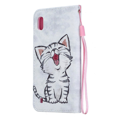 For Samsung A10/A20/A30 Smartphone Case PU Leather Wallet Design Cellphone Cover with Card Holder Stand Available Red lip cat