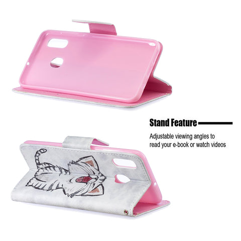 For Samsung A10/A20/A30 Smartphone Case PU Leather Wallet Design Cellphone Cover with Card Holder Stand Available Red lip cat