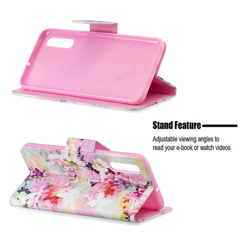 For Samsung A50/A70 Smartphone Case Overall Protective Phone Shell Lovely PU Leather Cellphone Cover with Card Slots Watercolor flower