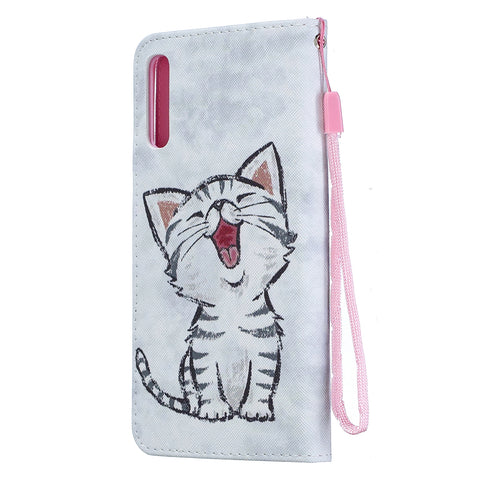 For Samsung A50/A70 Smartphone Case Overall Protective Phone Shell Lovely PU Leather Cellphone Cover with Card Slots  Red lip cat
