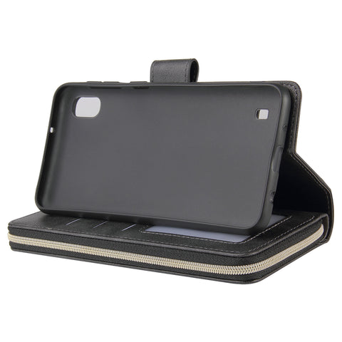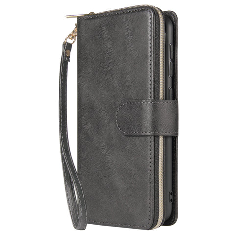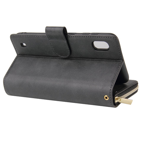 For Samsung A10/A20/A30/A50/A30S/A50S Pu Leather  Mobile Phone Cover Zipper Card Bag + Wrist Strap black