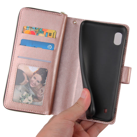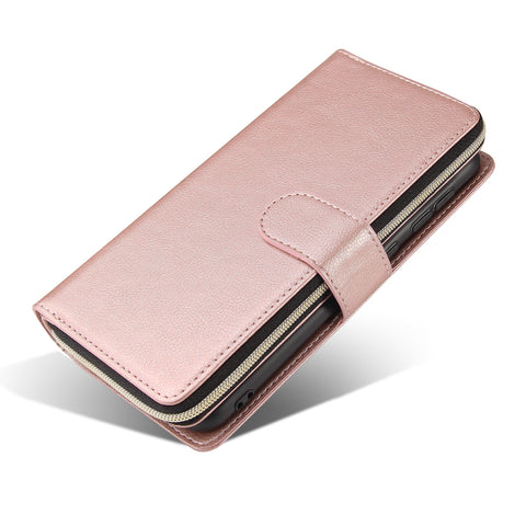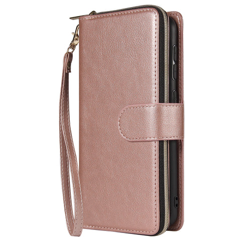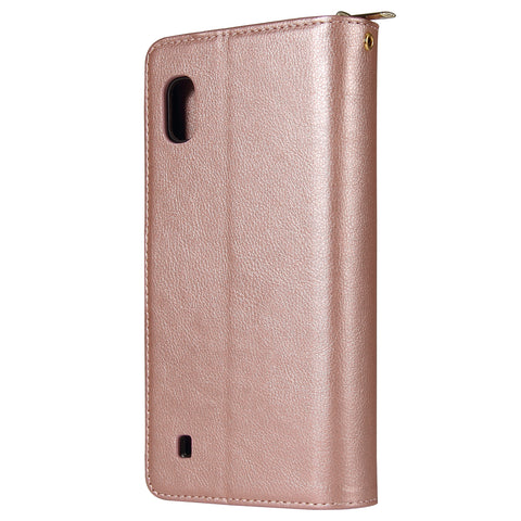 For Samsung A10/A20/A30/A50/A30S/A50S Pu Leather  Mobile Phone Cover Zipper Card Bag + Wrist Strap Rose gold