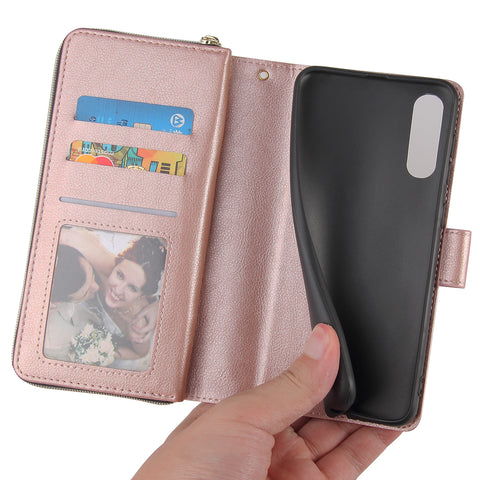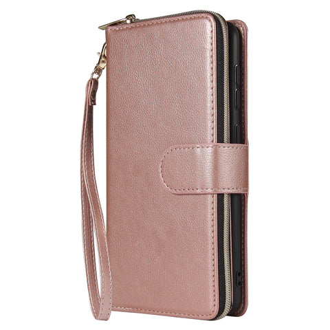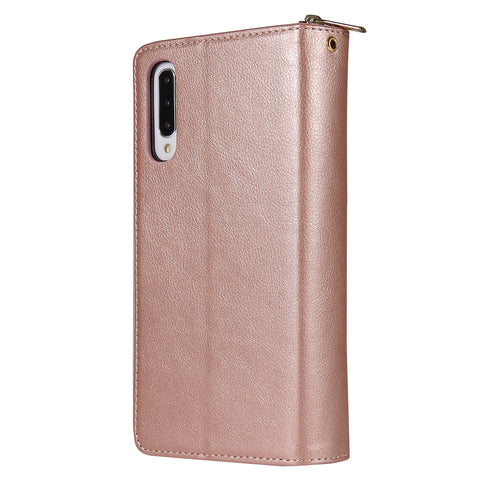 For Samsung A10/A20/A30/A50/A30S/A50S Pu Leather  Mobile Phone Cover Zipper Card Bag + Wrist Strap Rose gold